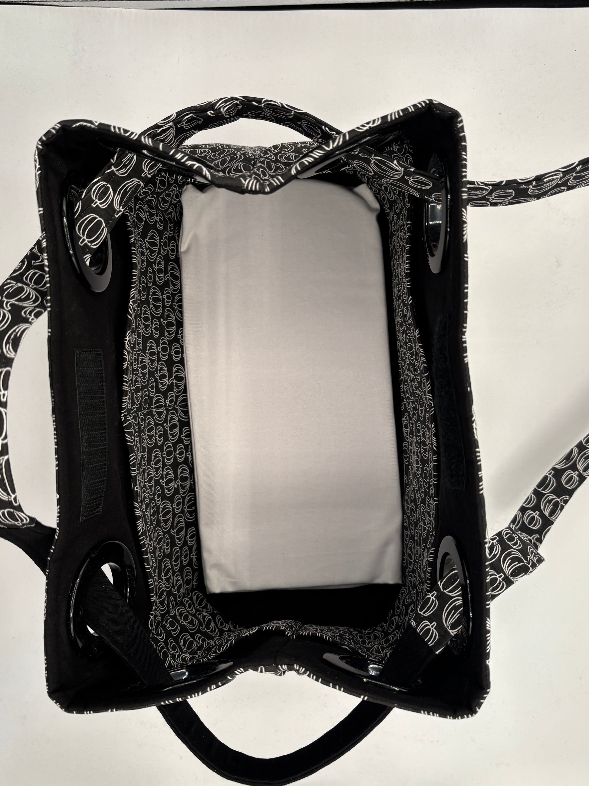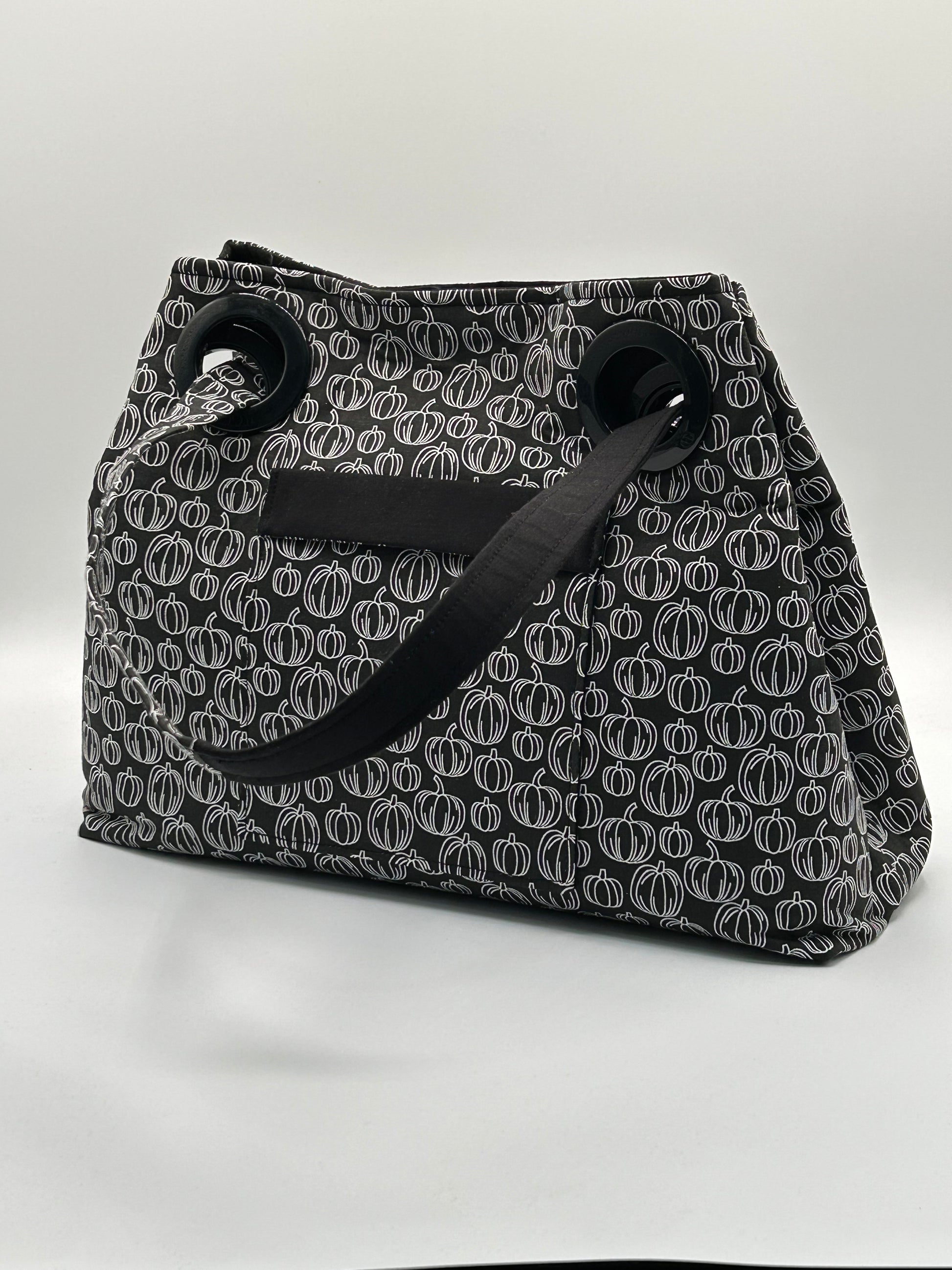 This bag is a handmade fabric handbag crafted with care and attention to detail. This bag features one exterior large pocket and eight interior pockets. This bag has a velcro closure that automatically closes when picked up. It has a hard bottom that can be removed so the bag can be washed. When you pull one side of the handle through the grommets it also becomes a crossbody! It measures approximately 11" in height, 14" in length and 7" wide. Perfect for everyday carry or special occasions, this versatile bag features durable fabric construction and a spacious interior to hold all your essentials. Each bag is individually made, ensuring unique character and quality craftsmanship.